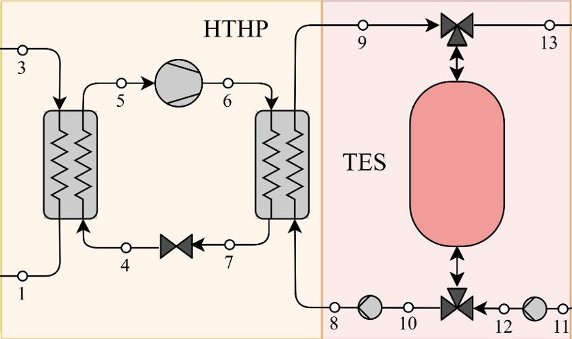 High Temperature Heat Pump (HTHP) + Thermal Energy Storage (TES)